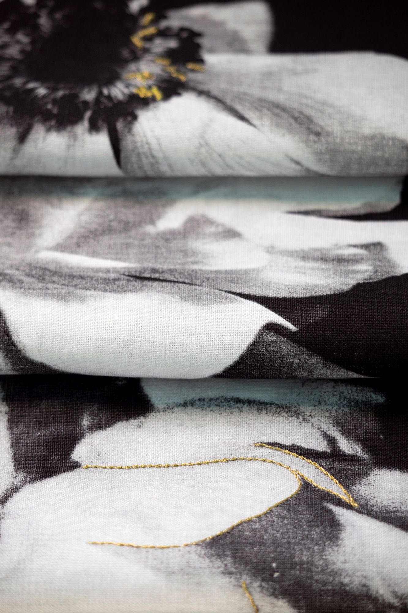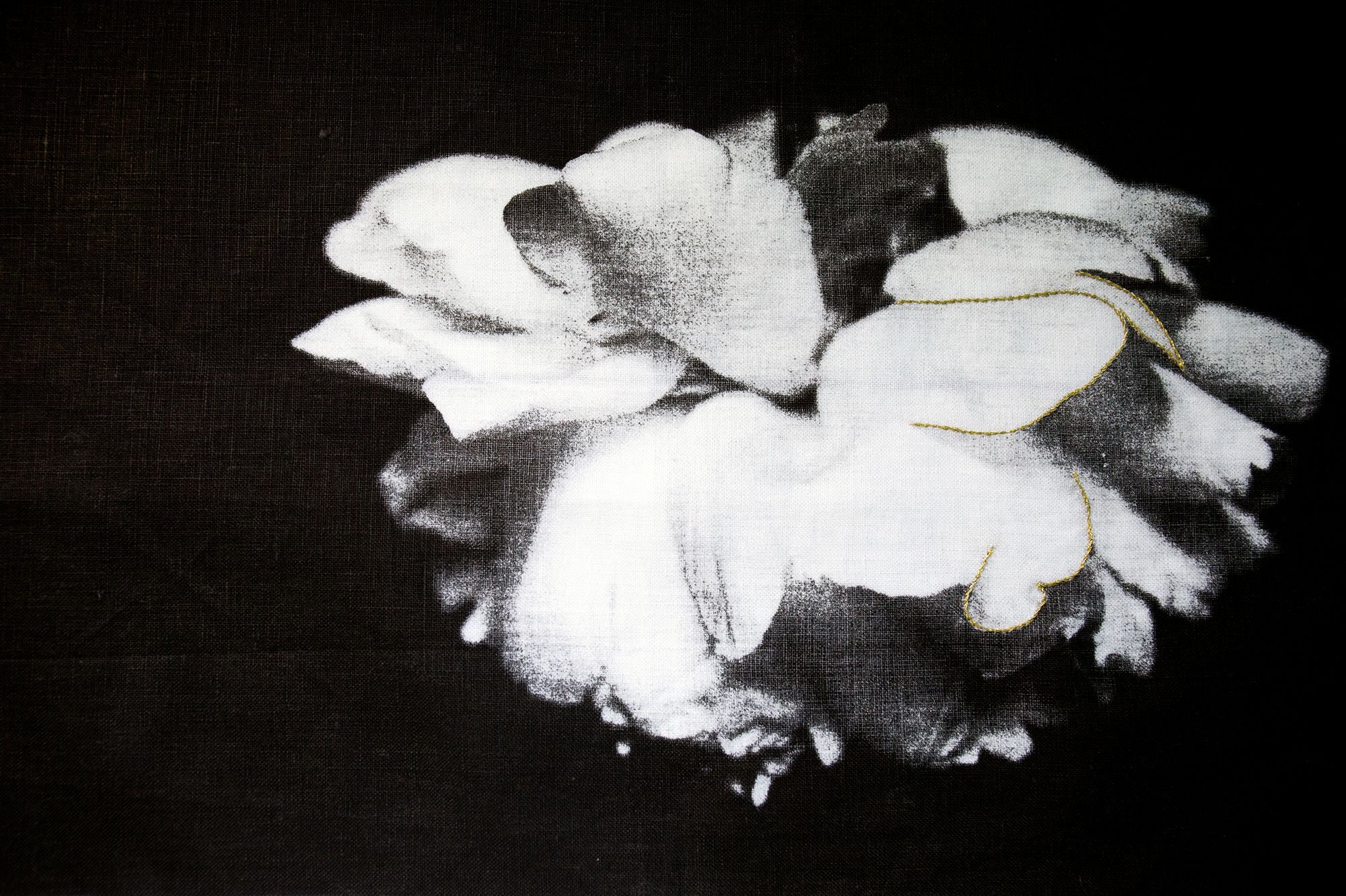 The project took on an even deeper meaning when an elderly group of women known as ‘A Avó veio trabalhar' (Grandma Came to Work) joined ranks and became involved to handstitch gold thread onto selected parts of the linen flower images.